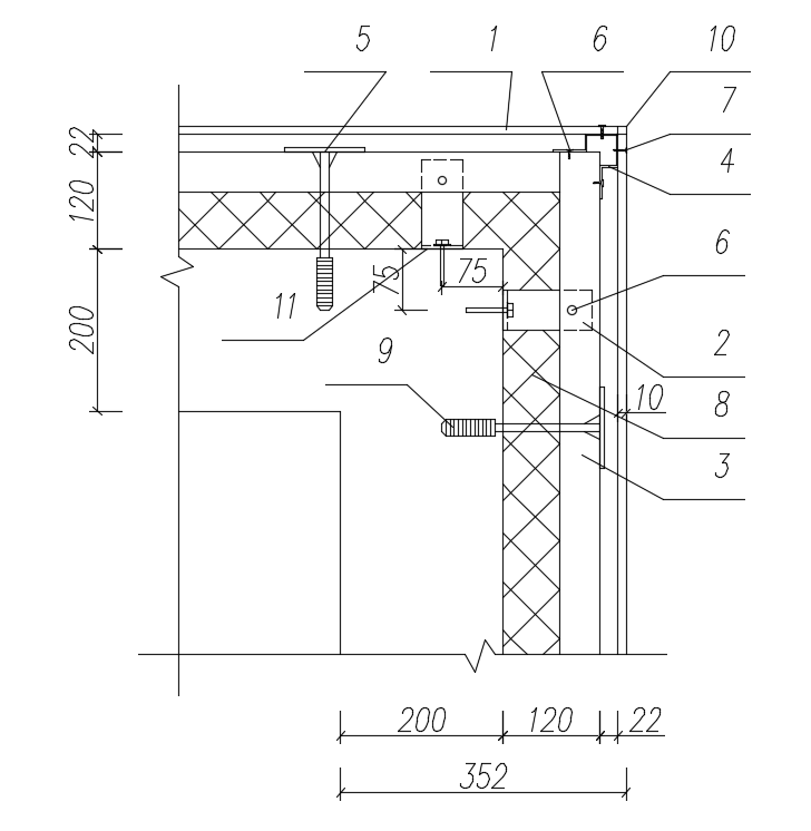 Cross section view of Insulation fixing scheme is given in this Autocad drawing file. Download now.