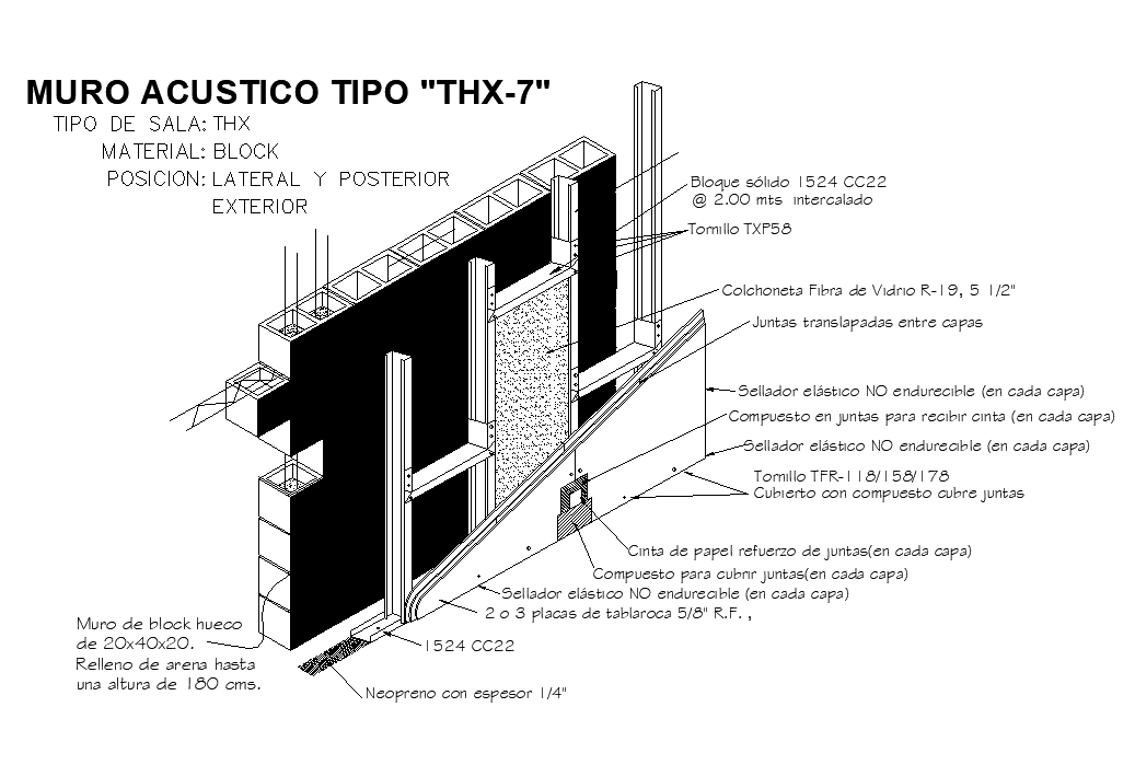 2D Autocad file has the detail side and back side block of acoustic wall type. This is side and back side view of acoustic wall. Base coat, R 19 Fiberglass Mat, 5 1/2 ", TXP58 Screw, Joints overlapped between layers, Nail and cap, Non-hard enable elastic sealant (in each layer), Joint compound to receive tape, Joint reinforcing paper tape, Joint covering compound (in each layer), Metal hilt 1/4 "every 40 cm, Neoprene 1/4" thick and other details are given in this drawing. For more details download the Autocad drawing file. Thank you for downloading the Autoad drawing file and other CAD program files from our cadbull website.