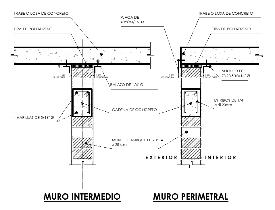 Exterior view of intermediate wall is given in this Autocad drawing file. Concrete hollow block is provided. Reinforced concrete slab, support for fixing 1 x3 / 16 floor walls, pins with bolts types of concrete t-32 cal.38 anchored with gun (induztrial bullet), false roof panel ceiling or acoustic ceiling, armed concrete chain, concrete hollow block, finished floor and other details are given in this drawing. For more details download the Autocad drawing file. Thank you for downloading the Autoad drawing file and other CAD program files from our cadbull website.