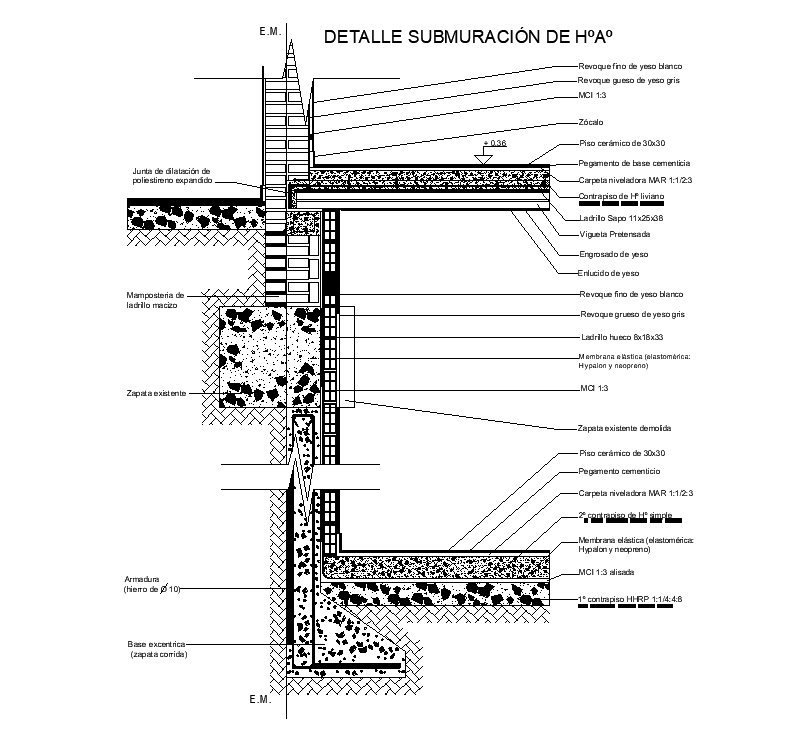 Submuration detail plan is given in this Autocad drawing file. This is construction drawing. Fine white plaster plaster, Thick gray plaster, 30x30 ceramic floor, Cement based glue, MAR 1: 1/2: 3 leveling pad and other details are mentioned. For more details download the Autocad drawing file. Thank you for downloading the Autoad drawing file and other CAD program files from our cadbull website.