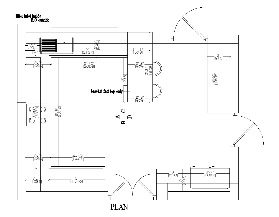 19’x15’ kitchen plan is given in this Autocad drawing file. Download now.