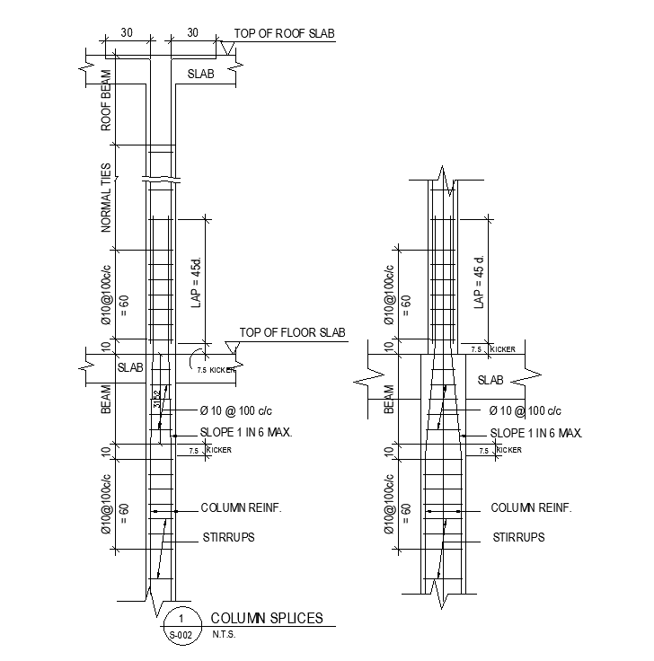 Column splice section view is given in this Autocad drawing file. Top of floor slab is given in this model. Column reinforcement and stirrups is mentioned in this model. For more details download the Autocad drawing file. Thank you for downloading the Autoad drawing file and other CAD program files from our cadbull website.