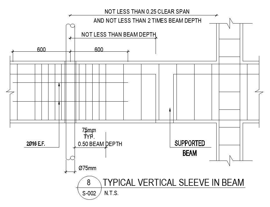 Typical vertical sleeve in beam is given in the Autocad drawing file. Download now.