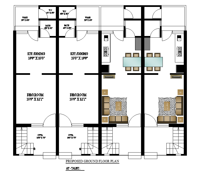 Duplex ground floor plan is given in this Autocad drawing file. Download now.