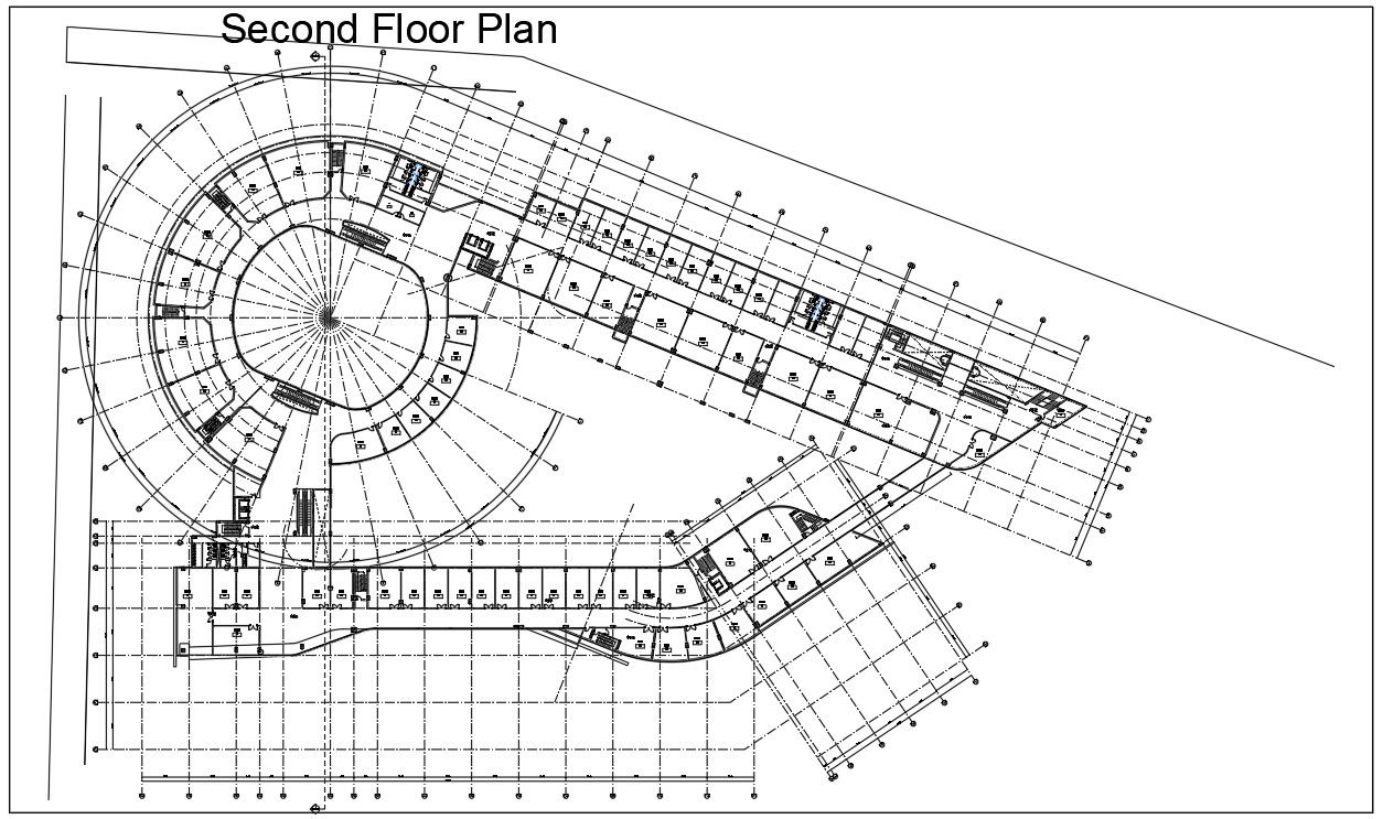 Second-floor plan drawing described in this AutoCAD file. this file consists of a parking plan, open space detail, junction drawing, landscaping given with dimensions and specifications in this file. this can be used by architects and engineers. Download this 2d AutoCAD drawing file.