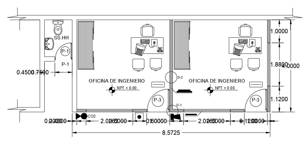 Personal office floor plan detail drawing specified in this AutoCAD file. Download this 2d AutoCAD drawing file.