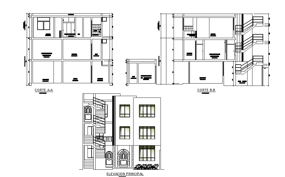 The residence house building section drawing and elevation design which include G+2 storey floor level building model design, door window marking, and main entrance gare with all dimension detail. Thank you for downloading the Autocad drawing file and other CAD program files from our cadbull website.