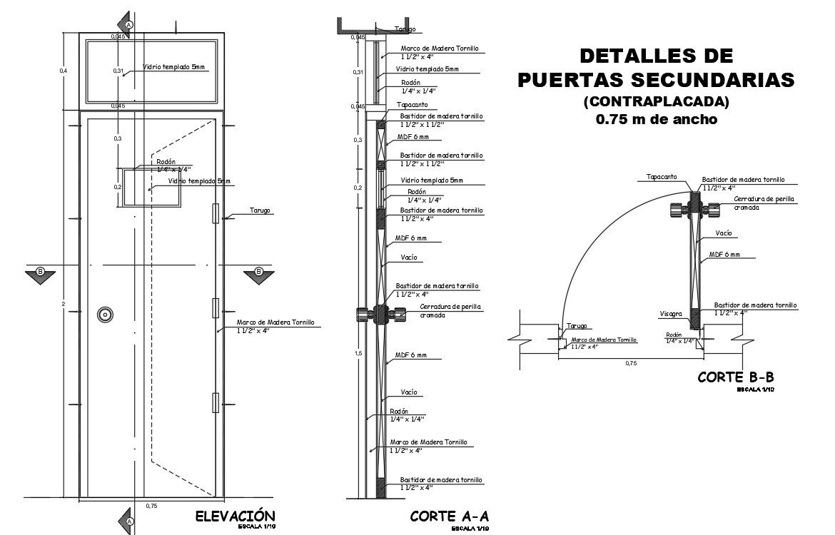 Door elevation and section detail drawing presented in this AutoCAD file. download this 2d AutoCAD drawing file.