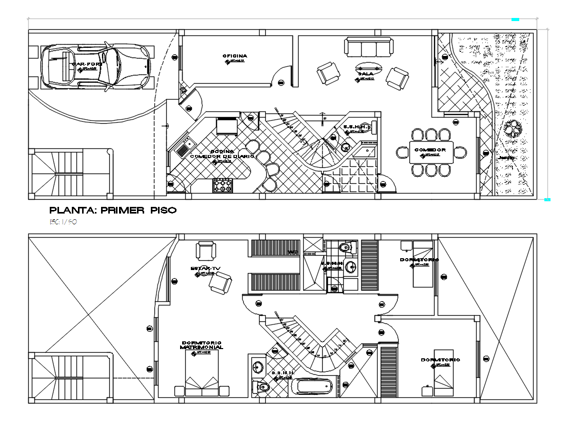 21X7 Meter House Ground Floor And First Floor Plan AutoCAD DRawing Download DWG File