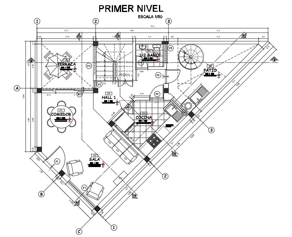 Floor plan detail drawing of bungalow described in this AutoCAD file. download this 2d AutoCAD drawing file.