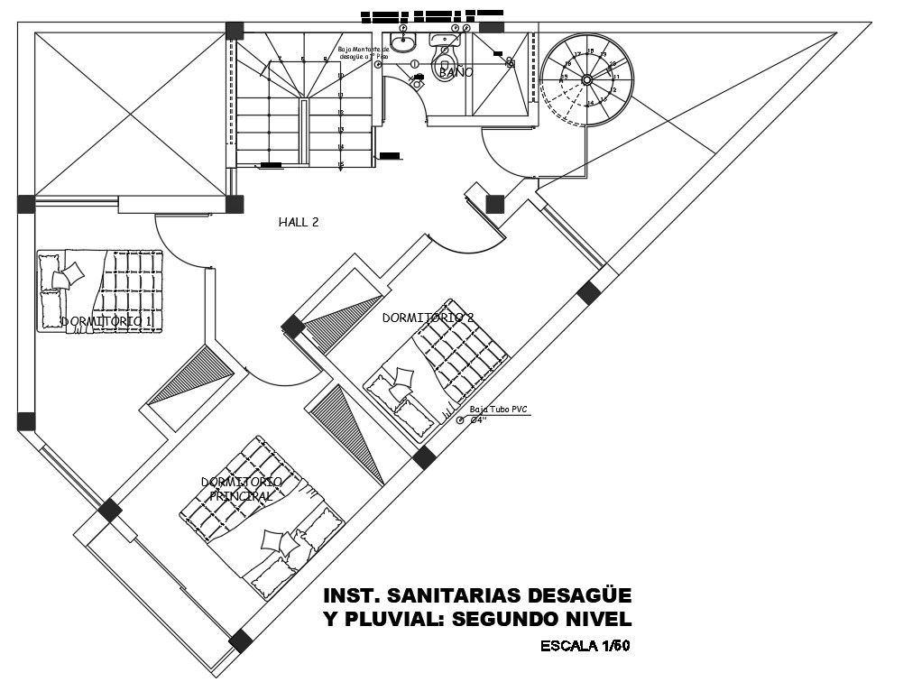Second-floor plan drawing of the Bungalow provided in this AutoCAD file. download this 2d AutoCAD drawing file.