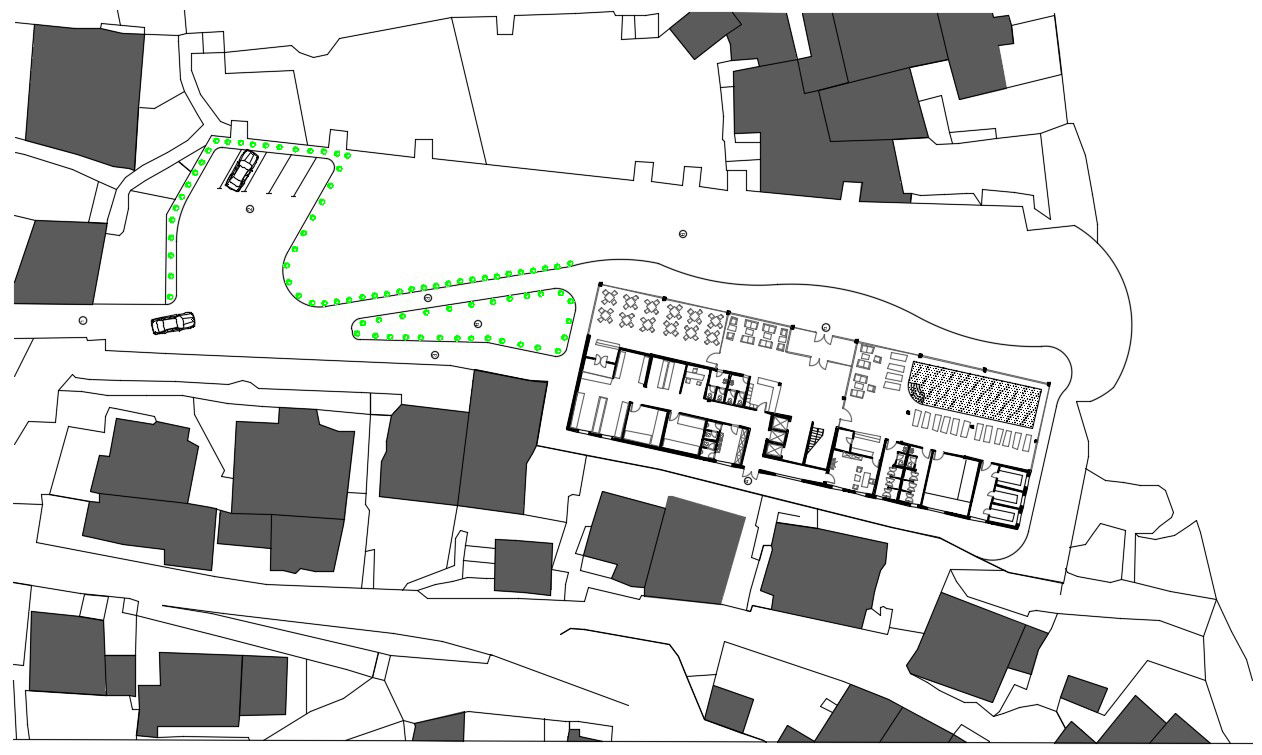 An existing building layout of 16x50m hotel building is given in this Autocad drawing file.Download now.