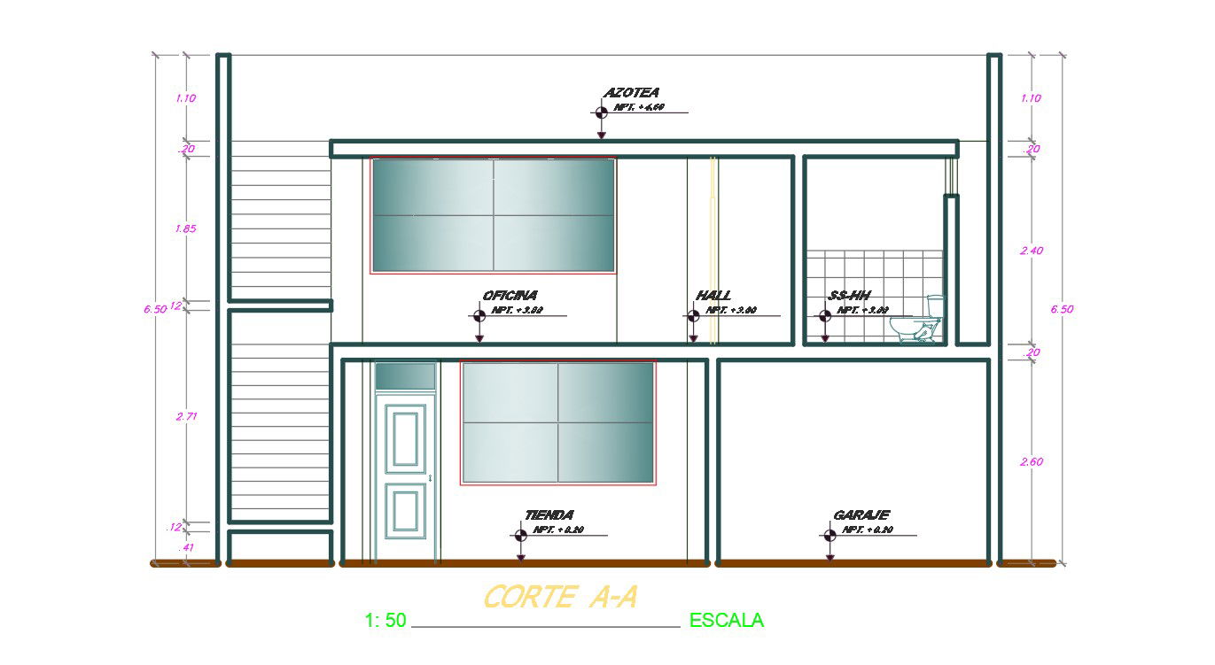 A section view of 10x7m office building is given in this Autocad drawing file. This is G+1 office building. In the first floor, the car parking, reception, office cabins, store room, and water closet is available. For more details download the Autocad file. Thank you for downloading the Autocad file and other CAD program files from our website.
