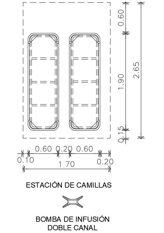 2D DWG Stretcher CAD Block for Healthcare Facility Layout Planning