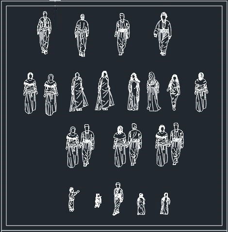 Kurdish autoCAD 2D figures, there are Man and women and kids figure also include back side and front side of the figures they all have worn Kurdish clothes.