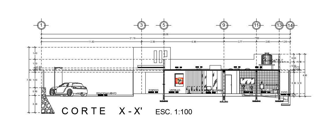 Bungalow interior section detail is presented in this file. Download this 2D autocad DWG File.