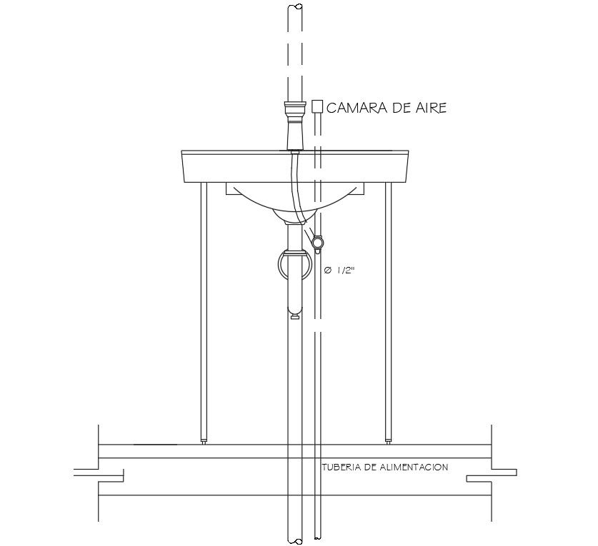 Washbasin section details are specified in this drawing file. Download this 2d AutoCAD drawing file.