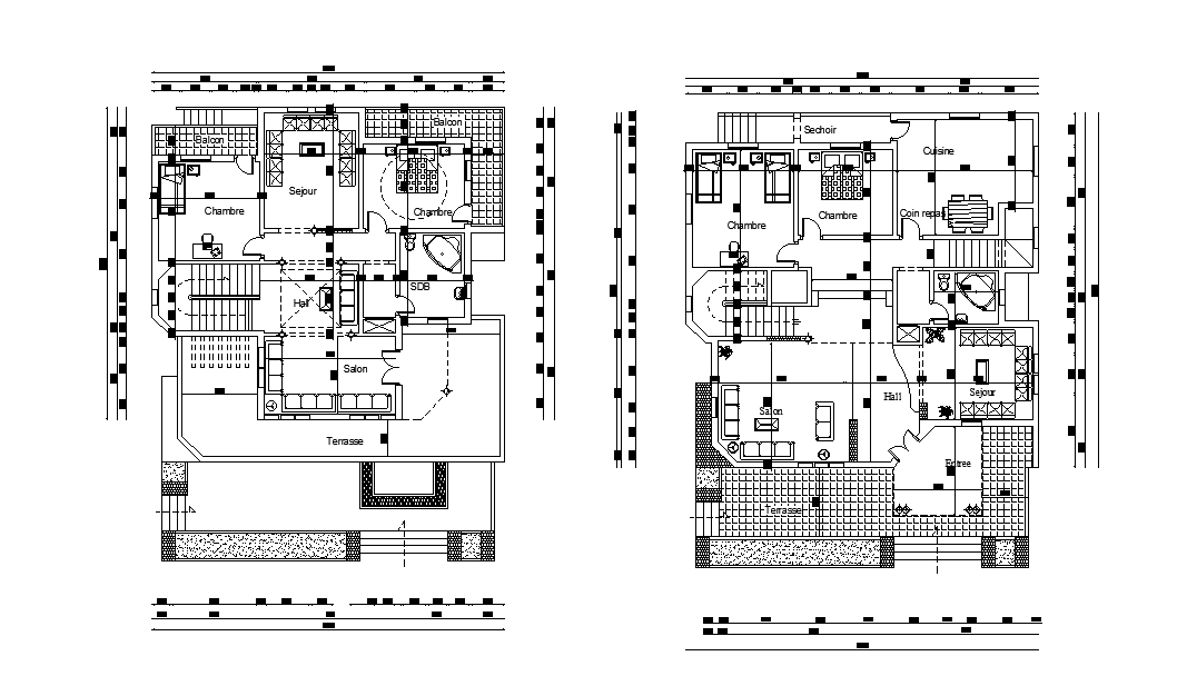 The architecture house ground floor plan and first-floor plan with furniture layout CAD drawing which includes drawing room, living area, kitchen, 4 bedrooms with master bathroom and dress. the addition drawing such as all furniture design with dimension detail. download 14X17 meter plot size for AutoCAD house plan design and select which is more suitable at your ideal house plan design. Thank you for downloading the AutoCAD drawing file and other CAD program files from our website.