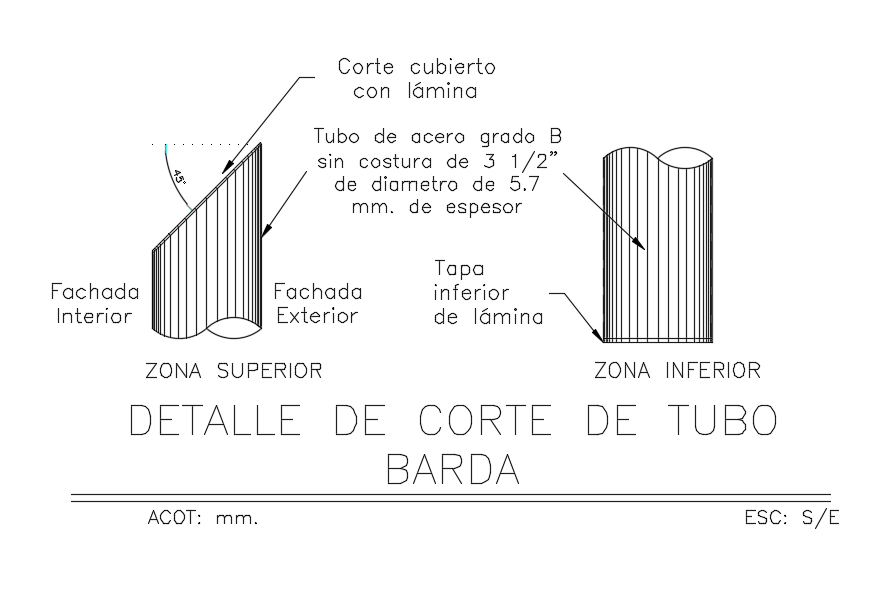 Fence tube cut section details are given in this drawing.Download the Autocad file now.