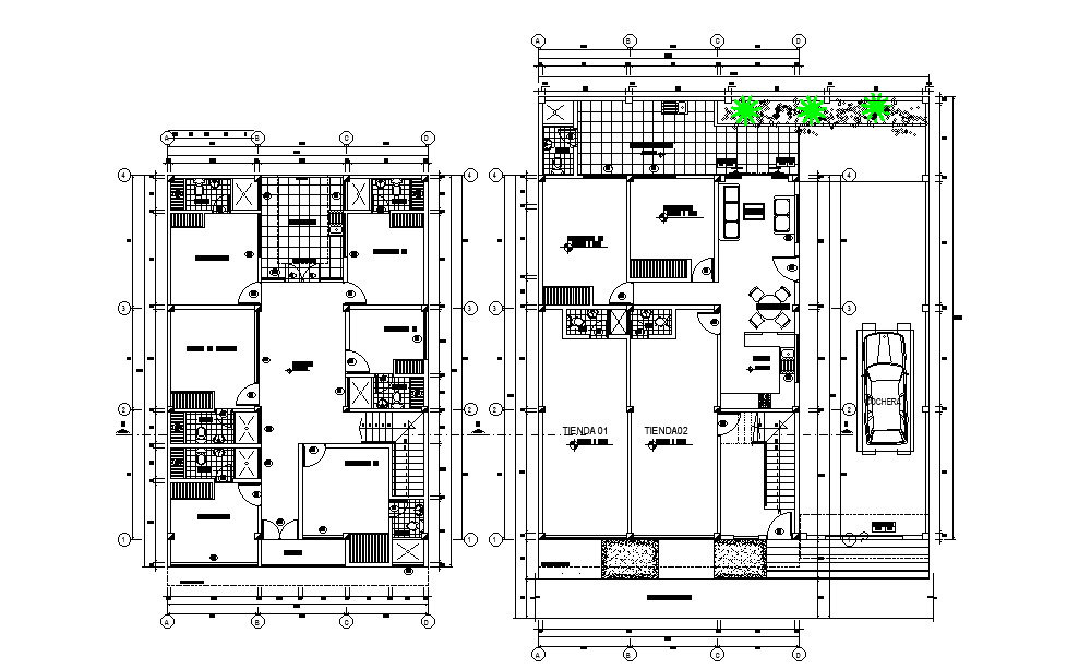Car Parking House Ground Floor And First Floor Plan AutoCAD Drawing Download DWG File