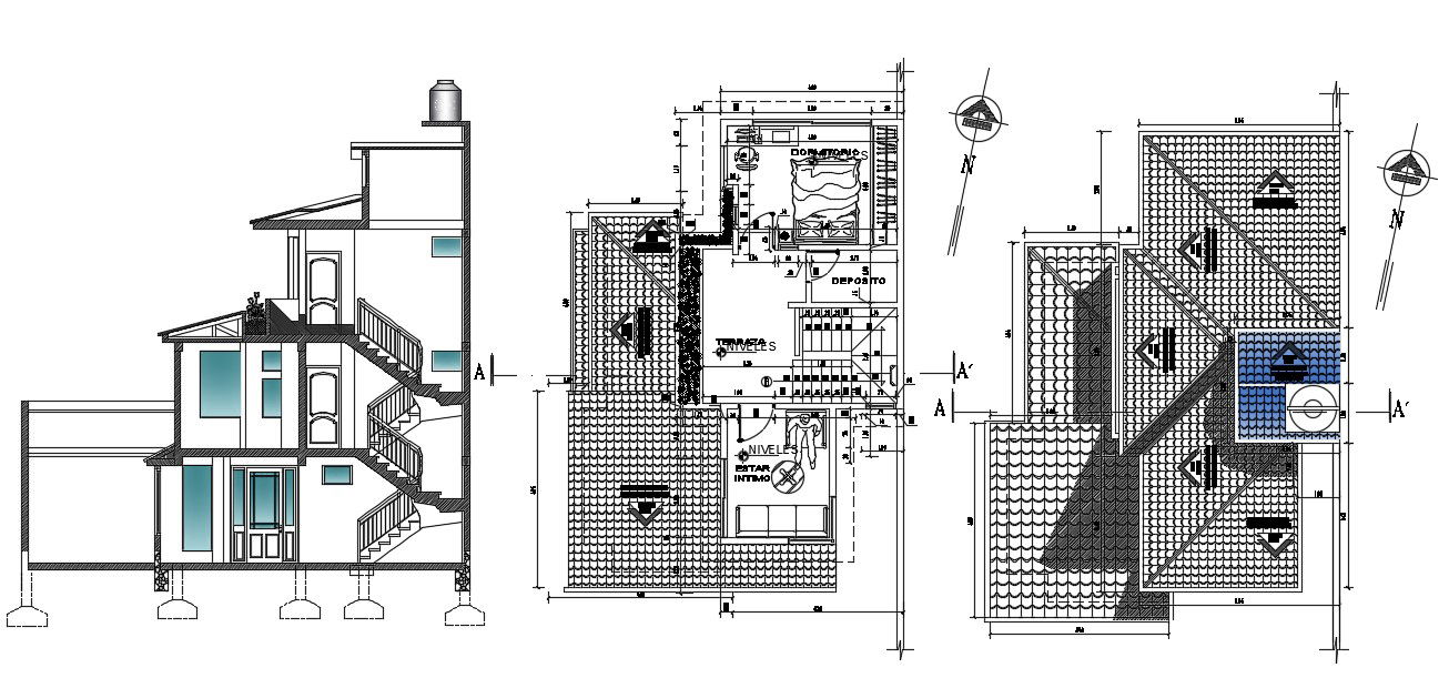 This AutoCAD DWG file offers a full architectural design of a G+2 house, including both floor plans and exterior elevation views. The layout presents the arrangement of each level, entryway placement, staircase position, and room distribution. The elevation showcases facade styling and structural dimensions, making it suitable for architects, civil engineers, and contractors looking for a ready reference for multi-story residential construction.
