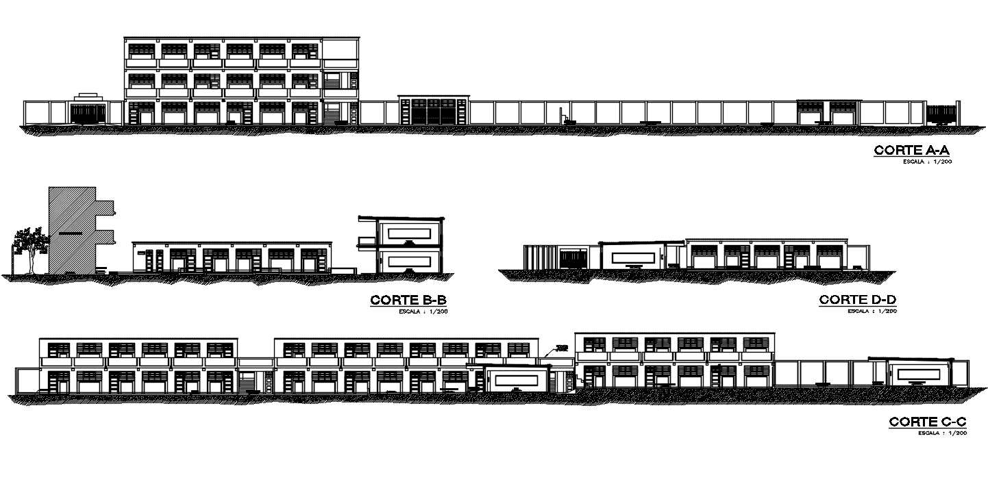The architecture school building section drawing and elevation design that shows different building blocks detail, wide playground with compound wall, entrance main gate, and classroom detail dwg file. Thanks for downloading the file and another CAD program from the cadbull.com website.