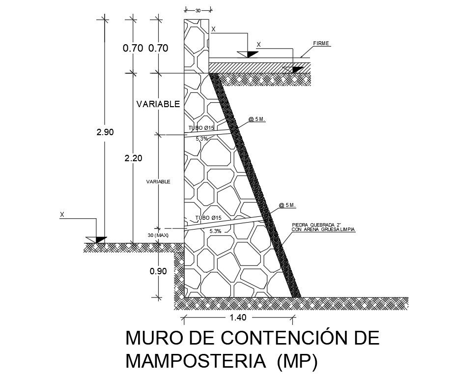 Masonry retaining wall structure detail defined in this AutoCAD file. Download this 2d AutoCAD drawing file.