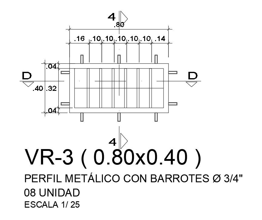 Metal profile with bar detail with the size of 0.80 x 0.40 defined in this file | Download this 2d AutoCAD drawing file.