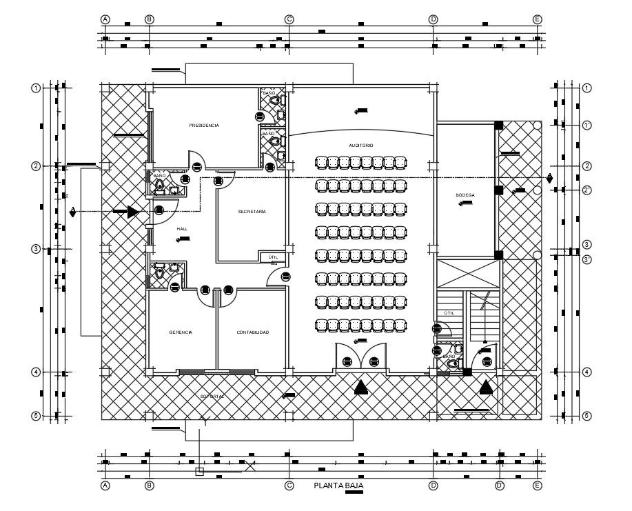 Corporate building floor plan is presented in this AutoCAD drawing file | Download this 2d AutoCAD drawing file.