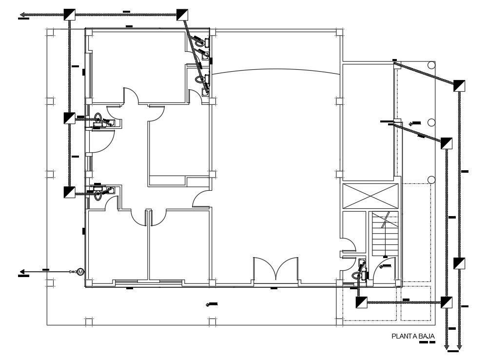 Corporate building floor plan is provided in this AutoCAD drawing file. | Download this 2d AutoCAD drawing file.
