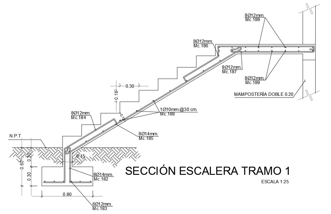 Detailed Staircase section described in this Autocad drawing file. In this file, working drawing detail given with Concrete details is also given with dimensions and specifications. this can be used by architects and engineers. Download this 2d AutoCAD drawing file.