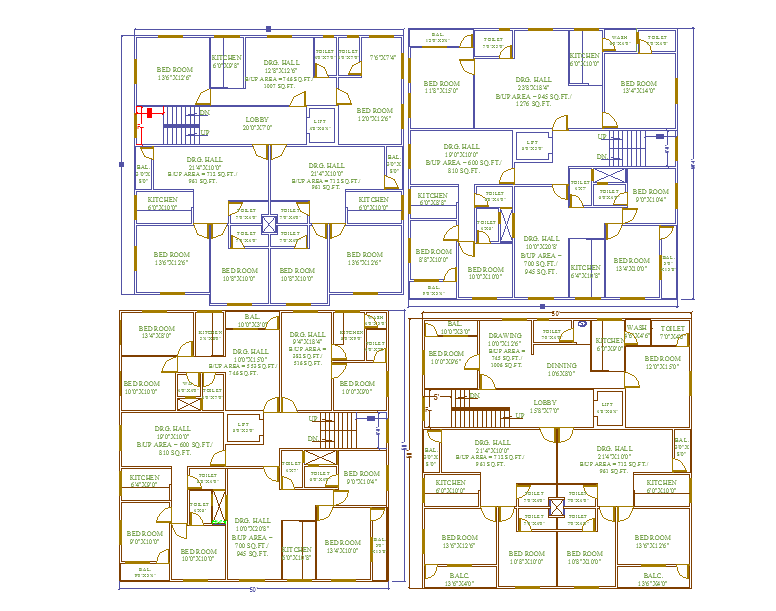 Apartment Floor plan Design in drawing & Four Floor Plan LAy-out Design. Different type of lay-out design.