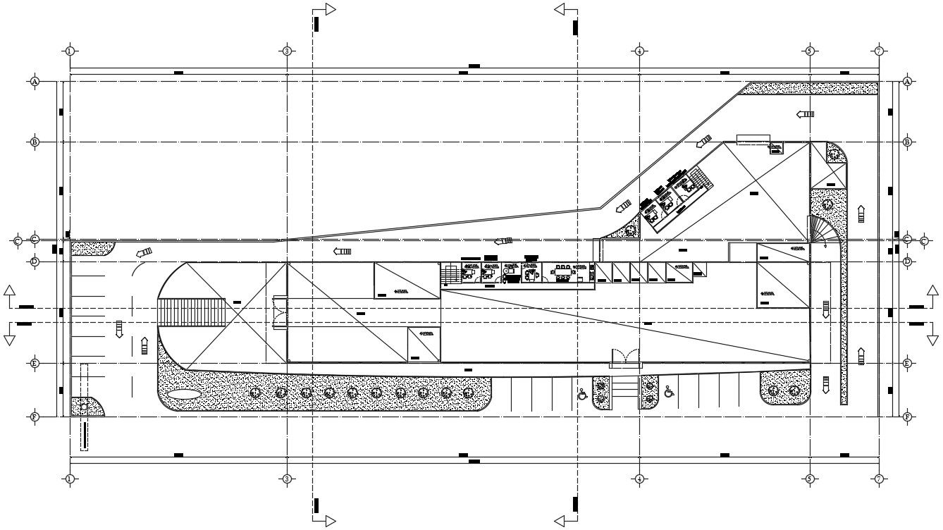 Basement parking area details of the office building CAD drawing. In this plan, the car parking slot, and garden area are given. This drawing is very useful for interior designers, Architect, and civil engineers. Thanks for downloading CAD and other CAD program files on the CADBULL.COM website. Download now.