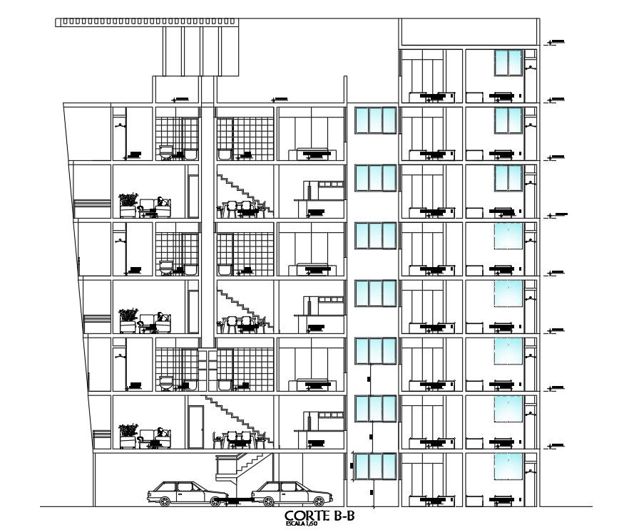 Commercial building section detail defined in this drawing file. in this file-office section, waiting for area furniture design and it seems G +7 story floor level building structure design, washroom section detail, column detail, window with level specifications. this can be used by architects and engineers. Download the AutoCAD file now.