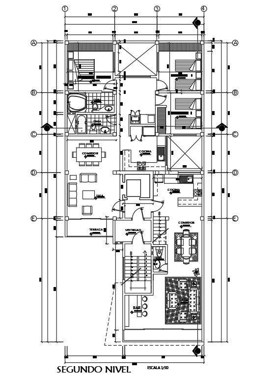 Hotel floor plan design separated in this cad file. this file consists of a furniture detail, living room, dining area, staircase detail, and washroom detail, children's room with column placements, given with dimensions and specifications. this can be used by architects and engineers. Download this 2d AutoCAD drawing file.