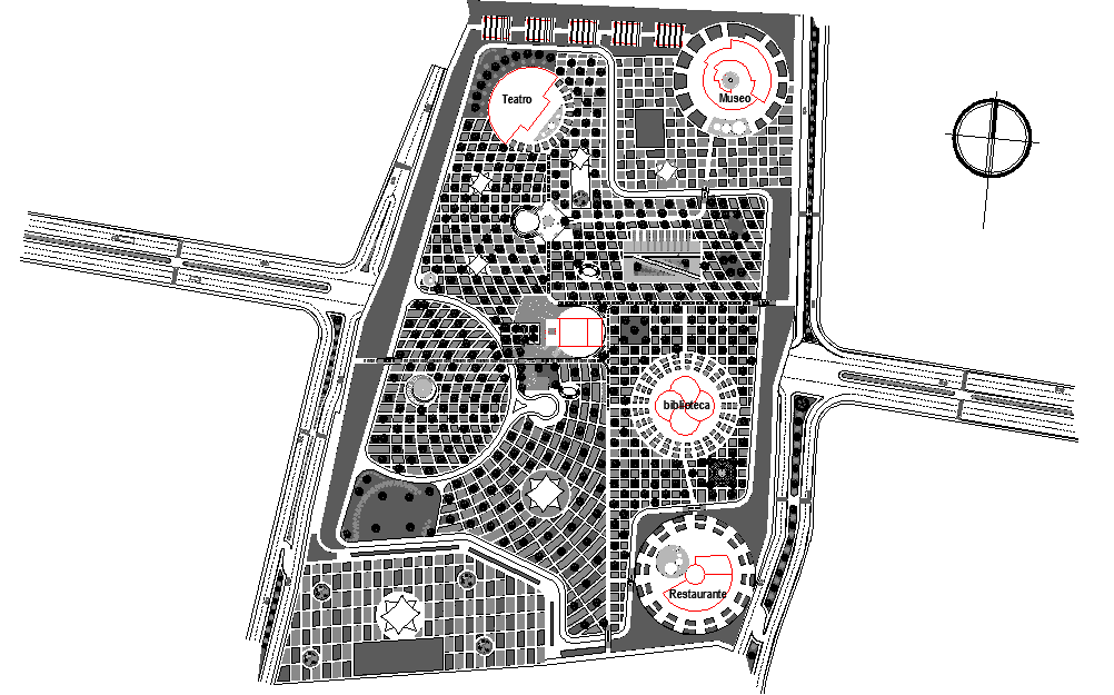 Hotel Architecture plan lay-out in autocad files. library, Museum, restaurant, theater, Garden detail.