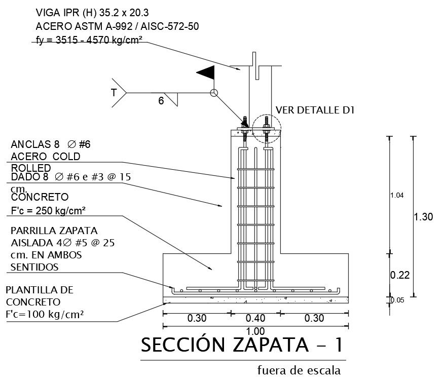 Shoe section Reinforcement Footing detail structure defined in this file | Download 2d autocad drawing file.