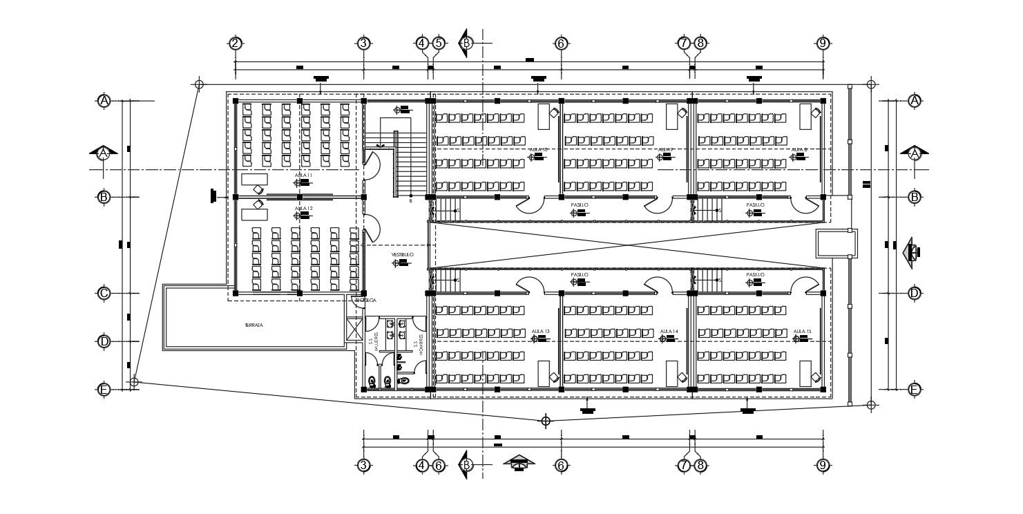37x18m second floor school plan is given in this Autocad drawing file. Download now.