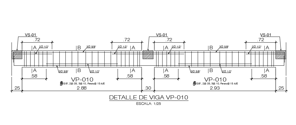 10x7m commercial plan of 6.6m length beam section view has been given in this Autocad drawing file. Two beams are connected in this drawing. Reinforcement details are given in this model. For more details download the Autocad file. Thank you for downloading the Autocad file and other CAD program files from our website.