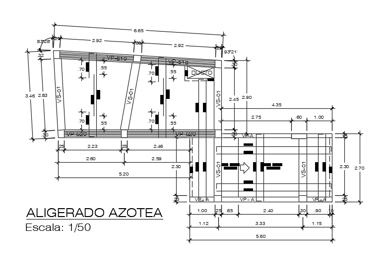 10x7m commercial shop of lightened roof plan has given in this Autocad file. Download the Autocad model.