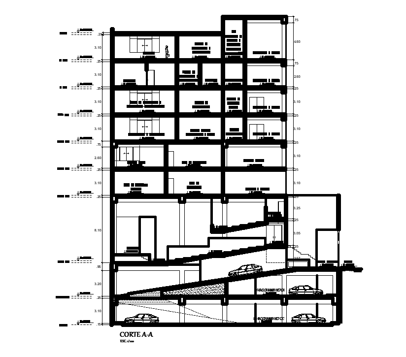 Front section view of 26x41m office building has been given in this Autocad drawing file. Total height of the building is 40m. This is G+10 floor office building. In this, auditorium, conference room, cafeteria, kitchen, car parking, dining area, director room, secretary room, work area, office rooms, foyer, water closet for male, water closet for female, and other details are available in this plan. For more details download the Autocad drawing file. Thank you for downloading the Autocad drawing file and other CAD program files from our website.