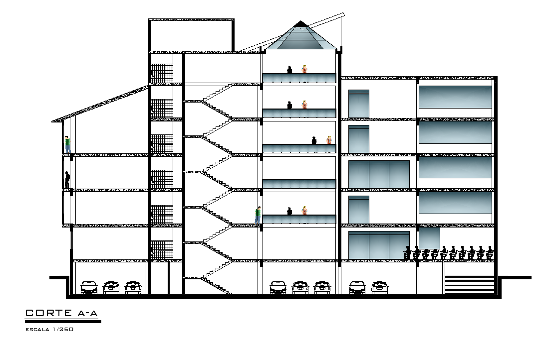 Front section view of 60x80m University building is given in this Autocad drawing file. Download now.