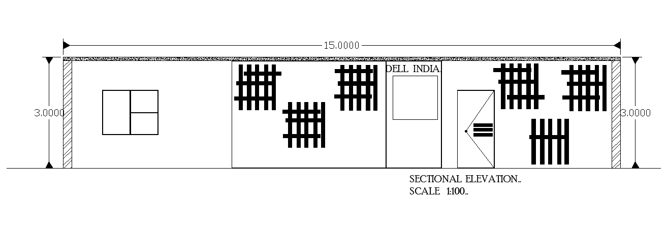 Cut sectional elevation view of 15x15m corporate building is given in this AutoCAD drawing file. Total height of the building is 3m. This is single story building. Meeting room, conference room, single panel door, executive office, reception, waiting area, pantry, water closet and other details are available. For more details download the AutoCAD drawing file. Thank you for downloading the AutoCAD drawing file and other CAD program files from our website.