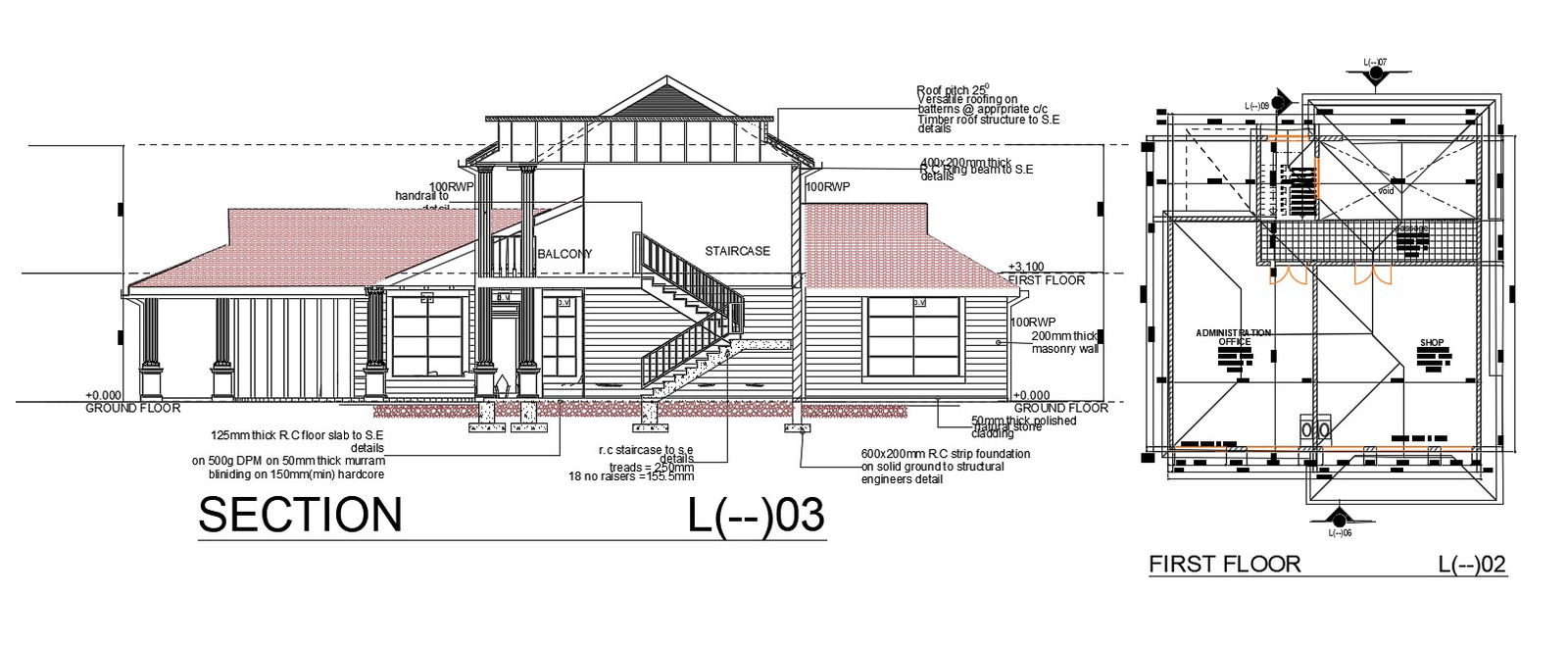 The corporate office and ship building sectional elevation design that shows 200mm thick masonry plastered and painted, 50mm thick polished natural stone cladding and walling pointed machine cut quarry stone, casement window and truss span roof detail dwg file. Thank you for downloading the AutoCAD file and other CAD program files from our website.