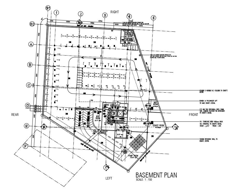 50x43m commercial shop basement plan is given in this Autocad drawing file. This is B+7 commercial building. Smoke lobby, pump room, MSB room, fan room, car parking, drive way, ramp gradient and other details are mentioned in this model. For more details download the AutoCAD drawing file. Thank you for downloading the AutoCAD drawing file and other CAD program files from our website.
