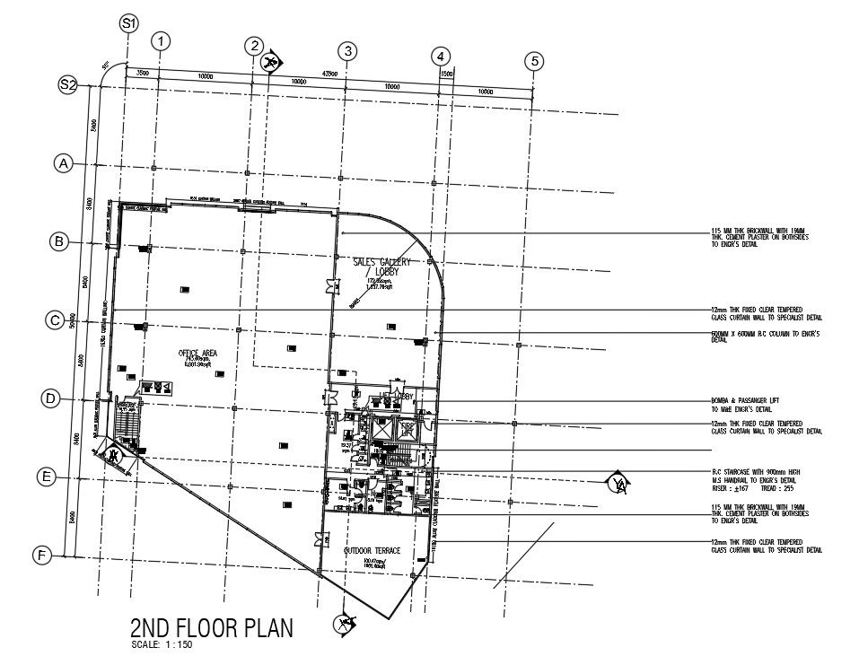 50x43m commercial shop second floor plan is given in this Autocad drawing file.Download the AutoCAD file.