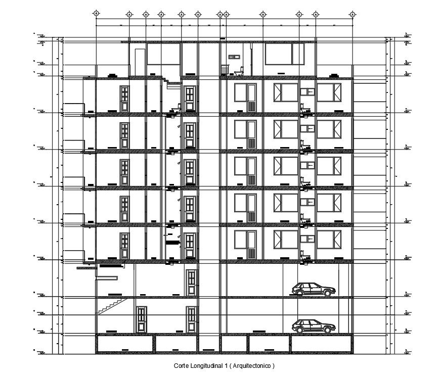 Right side section view of 50x43m commercial shop building is given in this Autocad drawing file.Download the AutoCAD model.