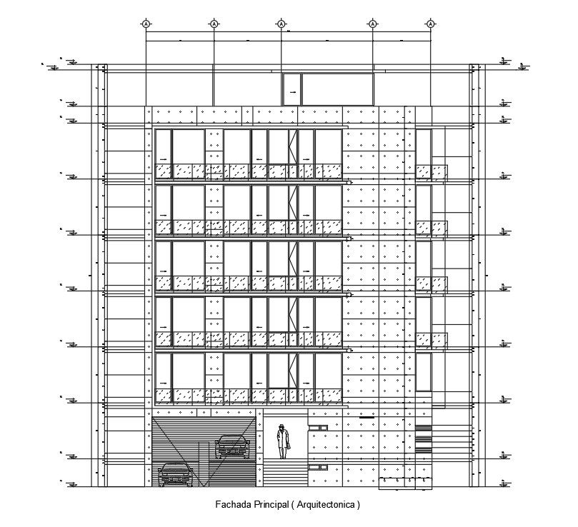 Left side elevation view of 21x15m house building has been given in this AutoCAD drawing file. This is G+ 6 apartment building. In this plan two houses are available. In each house kitchen, dining area, living hall, master bedroom with attached toilet, common toilet, kid’s room with attached toilet, and guest room is available. For more details download the AutoCAD drawing file. Thank you for downloading the AutoCAD drawing file and other CAD program files from our website.