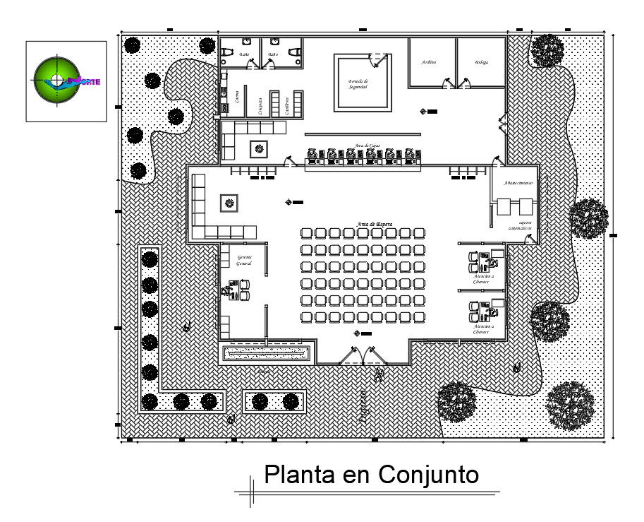 A layout of 22x20m bank plan is given in this Autocad drawing file. Download the AutoCAD model.