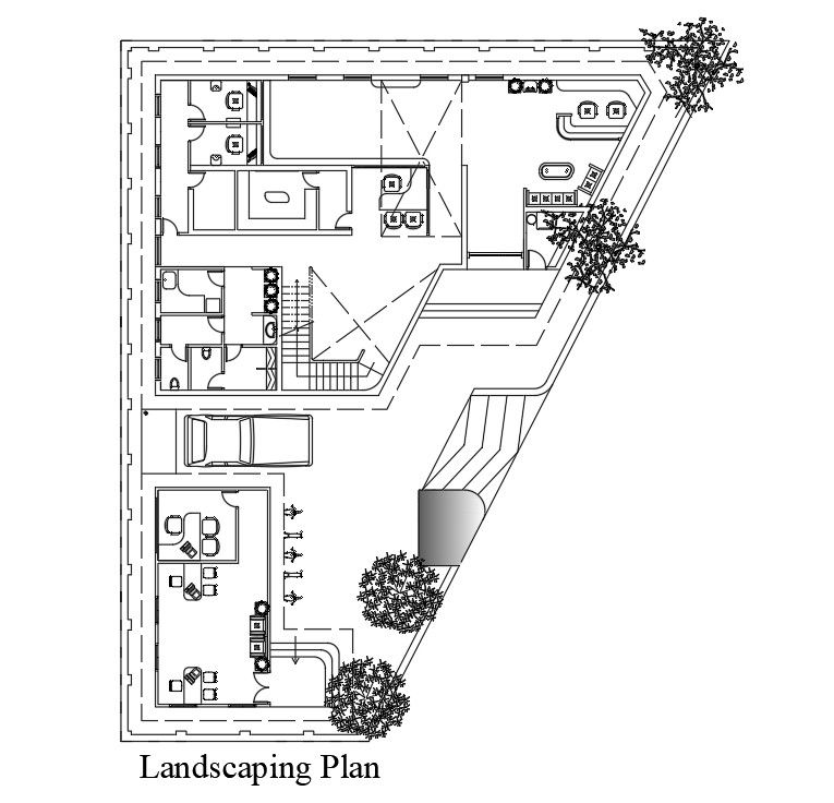 Landscaping of 21x14m bank is given in this Autocad drawing file. This is G+1 bank building. Two side road faces are available in this site. For more details download the Autocad drawing file. Thank you for downloading the Autocad drawing file and other CAD program files from our website.